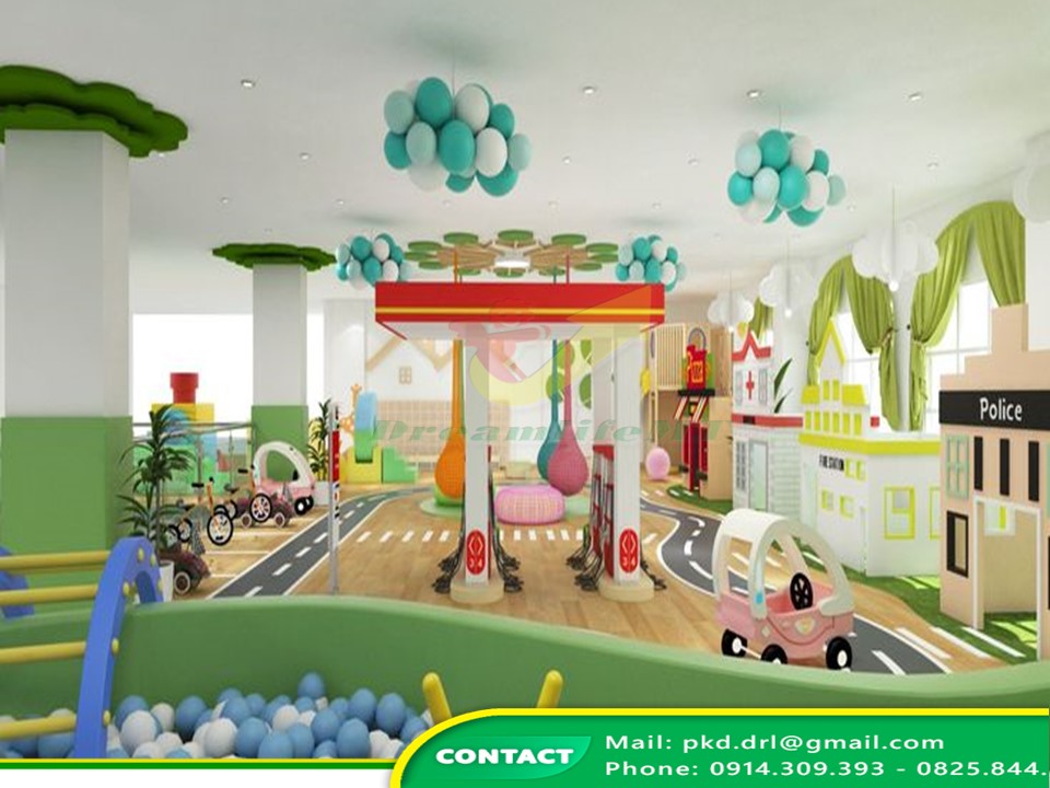 – Độ Cao Trần: Khi xây dựng khu vui chơi trong nhà, cũng cần chú ý đến độ cao của trần. Không gian thoáng đãng sẽ tạo cảm giác thoải mái hơn cho trẻ. Visa trong các thiết bị như cầu trượt hay nhà bóng. Cần đảm bảo đủ chiều cao để tránh va chạm với trần nhà.